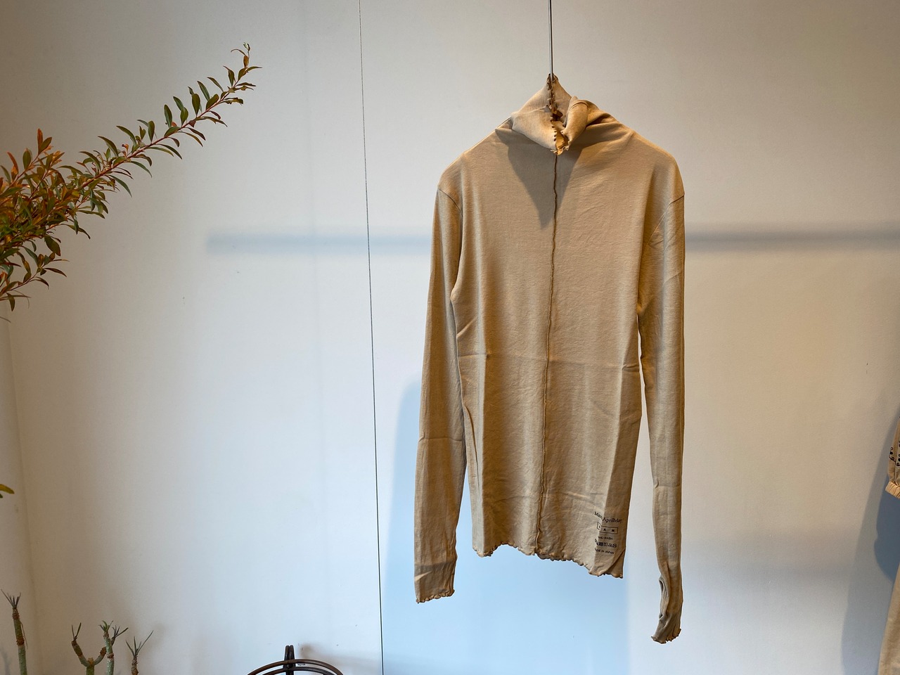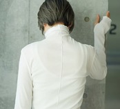 50/1の強撚糸をガス焼きし毛羽を取り除いた清涼感のあるドライタッチ。ガーゼ調に編み立てた軽さとソフトな肌触り。