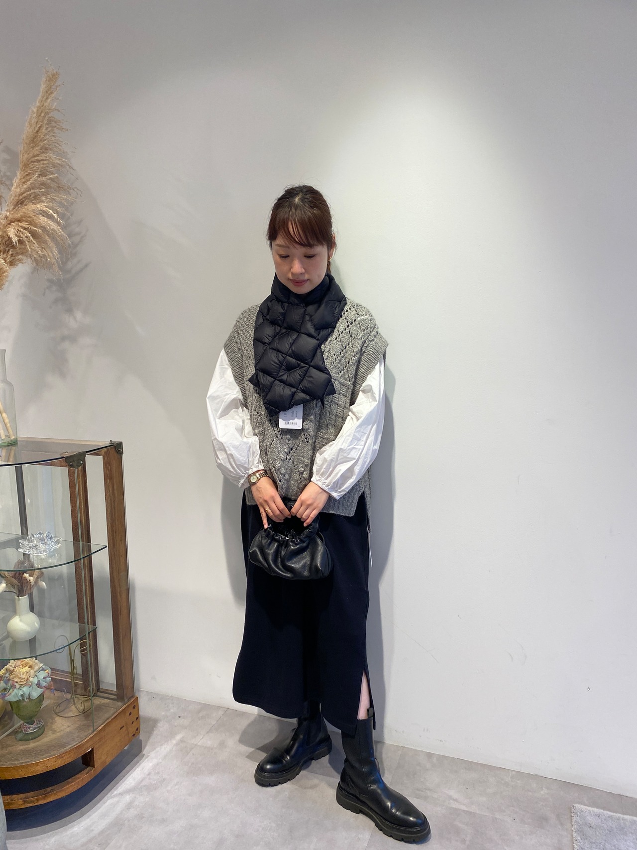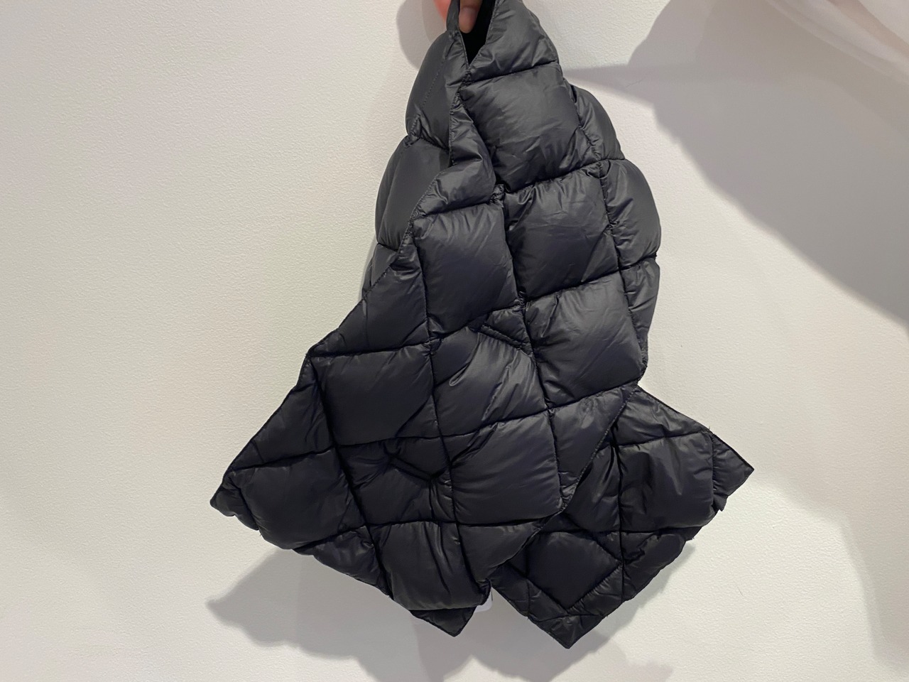 とても軽くて暖かく、首元でコンパクトに収まるサイズ感も特徴です。